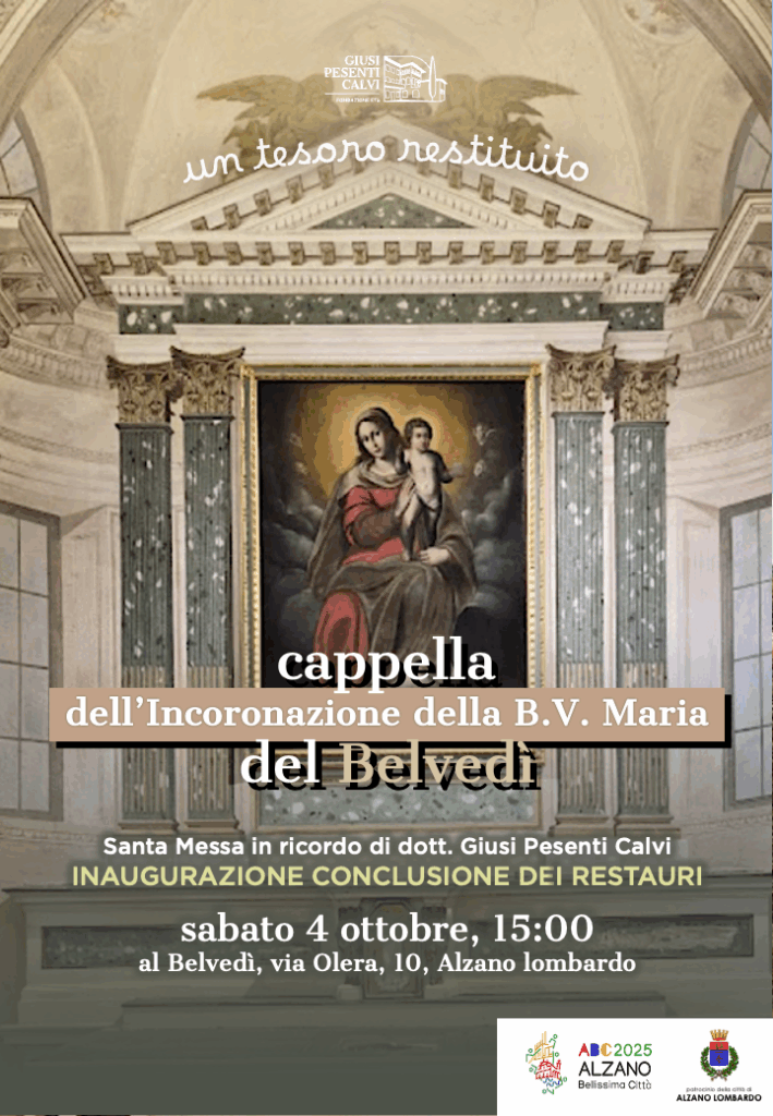 Sabato 4 ottobre si terrà, alle ore 15:00, la Santa Messa in ricordo del dott. Giusi Pesenti Calvi, nell’anno in cui ricorre il centenario della nascita, e a seguire la benedizione e l’inaugurazione civile della rinnovata cappella, alla presenza delle autorità.