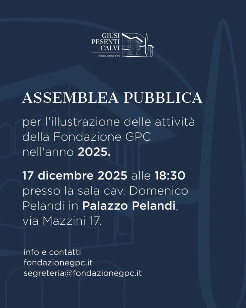Il 17 dicembre si terrà la consueta assemblea pubblica per aggiornare la comunità sulle attività svolte, i programmi e i progetti della Fondazione.